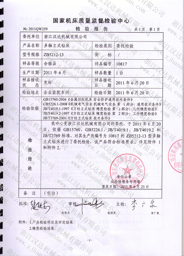 我公司研發(fā)制造的達(dá)人牌多軸立式鉆床,通過了國家機(jī)床質(zhì)量監(jiān)督檢驗(yàn)中心的質(zhì)量檢驗(yàn),