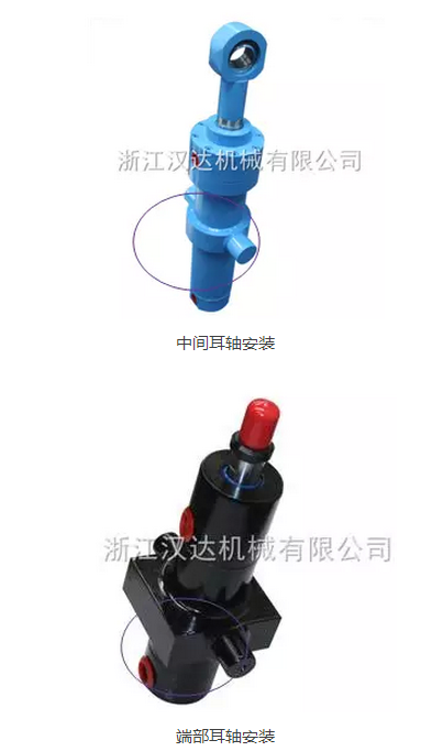 分為尾部單(雙)耳環安裝和端部、中部或尾部耳軸安裝,適合于液壓缸工作過程中其作用力使在其中被移動的機器構件沿同一運動平面呈曲線運動路徑的工況;當帶動機器構件進行角度作業時,其實現轉動力矩的作用力和機器連桿機構的杠桿臂與鉸支安裝所產生的力的角度成比例。