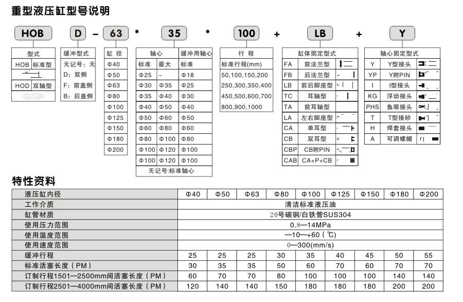 4)按照以上三條,可按照以下HOB油缸型號說明,明確您需要的型號;