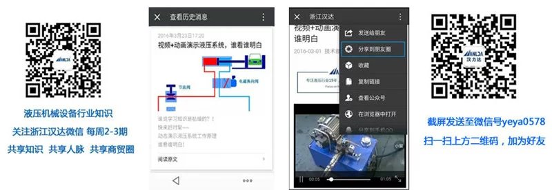 關注浙江漢達公眾號(微信號:zjhanda,下圖左邊二維碼)分享此文章微信版到您的朋友圈,并截屏發給微信號yeya0578(下圖右邊二維碼),即可入微信群《漢達班液壓系統學習分享群二》(《漢達班液壓系統學習分享群一》已滿員)